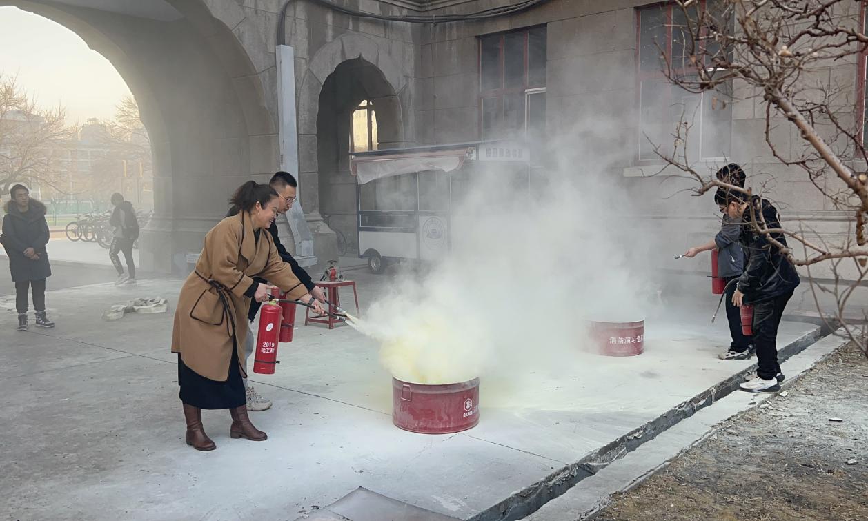 实操环节中,南岗区消防大队李鹏飞现场演示“提握瓶身、拔除保险、对准火源、按压手柄”四步灭火法,燃油盆模拟初期火情并指导师生分组实操。从初次操作时的紧张到熟练扑灭明火,参与师生切实掌握了扑灭初期火灾的关键技能